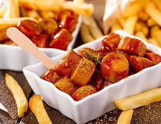 Ингредиенты: Колбаски (для гриля) - 2 шт. Кетчуп - 5 ст. л Лук репчатый - 1 шт. Вустерширский соус - 1 ст. л Карри - 1,5 ст. л Масло растительное Вино белое сухое Приготовление: Ставим колбаски вариться. Доводим до кипения и варим на слабом огне 10-15 минут. Мелко режем лук и обжариваем его на масле. Добавляем кетчуп. Добавляем вустерский соус и столовую ложку карри. Если соус получается густой, добавляем вина до нужной консистенции. Готовим все вместе еще минуту. Обсушиваем колбаски и обжариваем на гриле или сковороде-гриль. Для подачи порежьте колбаски, полейте соусом, сверху присыпьте карри. Можно по желанию гарнировать картофелем фри Приятного аппетита! Подпишись на рецепты от Павлика!