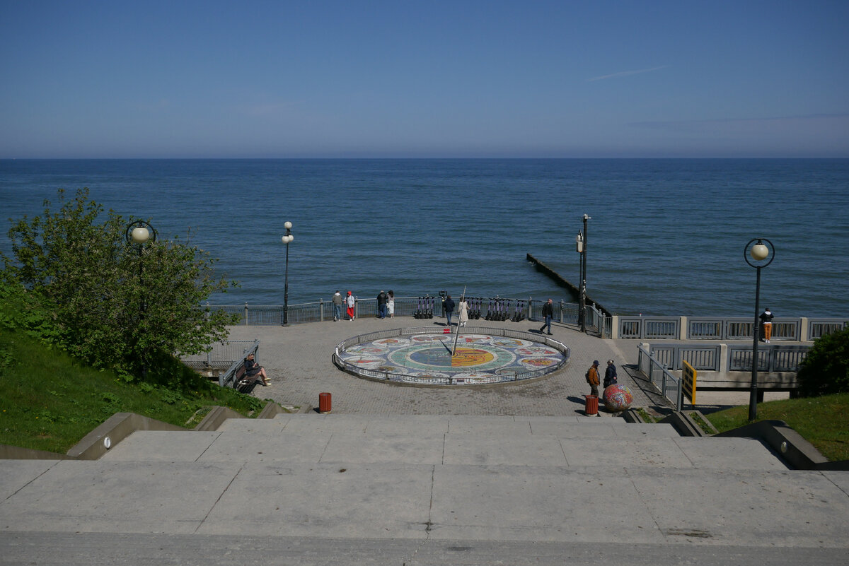 Очень калининградское выдалось лето в этом году - неделя жары сменяется холодной неделей. Солнце и дождь перемешиваются и постоянно чередуются. Да, дождевик здесь летом - предмет первой необходимости. Но какова бы ни была погода за окном, всегда приятно в свободное время выбраться к морю. Пусть даже и на несколько часов. Это не совсем летние фото, они сделаны в самом конце мая 2022 года. Итак, быстро пробежав центральные улицы Светлогорска, спускаемся прямо к Солнечным часам по широкой лестнице. Именно здесь заканчивается старый променад и начинается новый. Кстати, обратите внимание! С 20-ого июля часть старого променада закроют на реконструкцию - от Солнечных часов и до спуска "Серпантин" (там, где был Капитанский мостик). Пляж тоже будет закрыт для берегоукрепительных работ. От Солнечных часов и до спуска у Дома рыбака. Синим показан перекрытый участок пляжа. Красным показан перекрытый кусок променада. Солнечные часы - яркое украшение города. Созданы в 1974-ом году. Вид с променада у