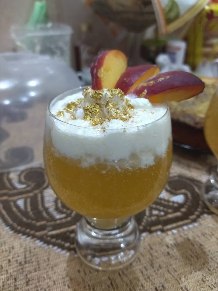 #июль #вкусно #пятница - день праздничного послевкусия. Если по порядку, то начать хочется с лёгкого нарядного слабоалкогольного. И это был роскошный коктейль и более чем столетней историей и весьма занятной - Беллини. Назван в честь итальянского художника Джованни Беллини (1430-1516), который считался мастером работы с розовыми оттенками на белом. Коктейль был придуман и впервые подан в баре Джованни Чиприани "У Гарри". Хозяин заведения водил дружбу с творческой богемой, был большим ценителем живописи, особенно - своего тёзки: цвет коктейля был призван символизировать оттенки одежд святых на полотнах мастера. Ингредиенты: Просекко, брюта или т.п. шампанского, персиков, сахара, льда, сливок 33%, Пищевая декоративная золотая пыльца Способ приготовления: Нужность сахара здесь зависит от сорта и сладости персиков. Т.е. можно обойтись и без сахара вообще. Равно как и без шапочки сливок. Итак, сливки взбить до крутого состояния, опять же - добавив или нет ложечку сахара по вкусу и желанию.