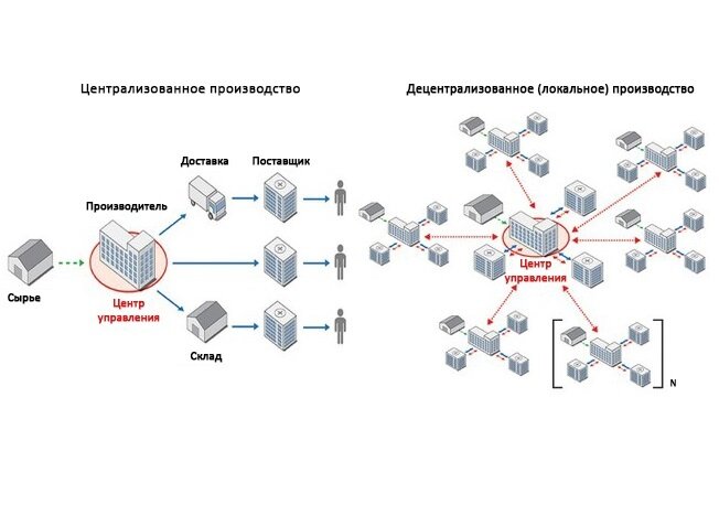 Чем распределенное производство принципиально отличается от централизованного, которое превалирует сегодня?