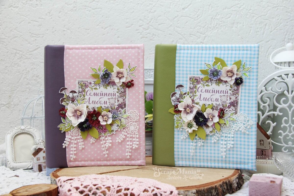 А теперь перейду к рассказу про альбом для девочки. Обложку украсила отрезом хлопка нежно-розового цвета в белый горошек и на корешок разместила отрез пыльно-фиолетового кожзама. Так же на обложке красуется тканевая карточка "Непоседы. Семейный альбом", отрез кружева, мои самодельные цветочки и немного вырубки ножами листиков из набора ножей "Магнолия" и вырезалки с листов 10х30 см - Лист с картинками 10х30 см "Непоседы. Ботаника", Лист с картинками 10х30 см "Непоседы. Листья", Лист с картинками 10х30 см "Непоседы. Цветы". Да-да, эта обложка практически один в один как обложка мальчишеского альбома.