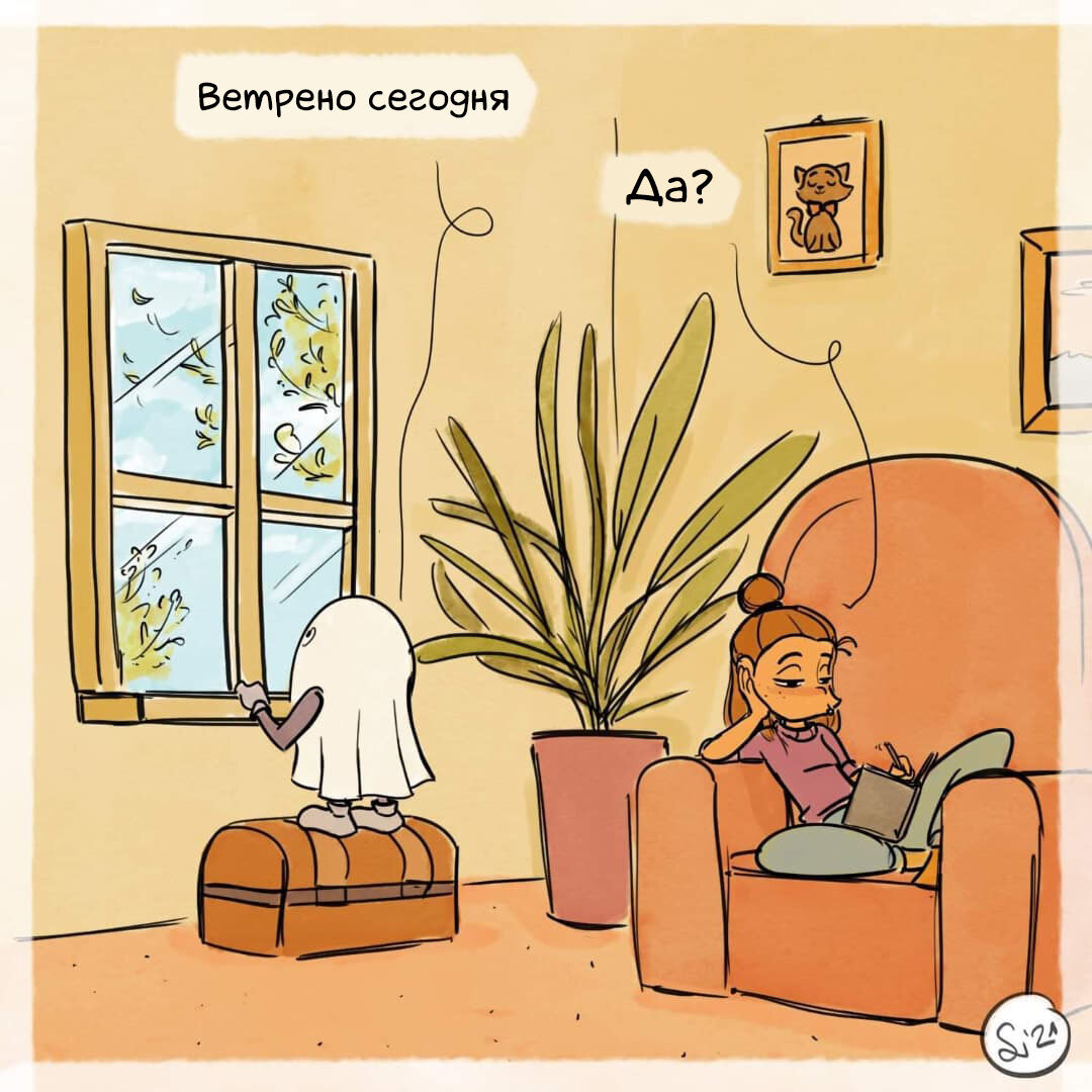 Сара Веттори - это иллюстратор студии Netflix, которая помимо своей основной деятельности, рисует веселые и яркие комиксы. Одна из таких серий - это о любознательном призраке. Осталось всего две части, что равно одна статья о них, и я сяду за перевод комиксов о рыцаре, который подружился с драконом. В виде рыцаря, конечно же сама Сара, которая сначала хотела пойти в бой с Драконом, но после передумала и осталась жить с ним, смеясь над другими смельчаками. Комикс о призраке и развлечениях заставляет меня сегодня кипеть. Дело в том, что сейчас я решила раз в дне недели устраивать себе какое-нибудь интересное развлечение. На следующей неделе это будет огромный парк развлечений, в который я уже купила билеты. Это к тому же будет моим днем рождения. Я родилась 28 июля, но праздновать буду 29 числа, потому что в четверг подруги не смогут. Ну и есть вероятность, что коллеги вспомнят про мой День рождения. А в августе я хочу сплавиться на сапах по довольно длинному маршруту и, разумеется,