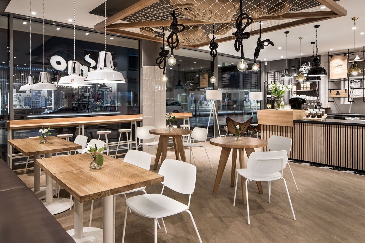 - Основная задача – создать современное пространство с быстрым обслуживанием с наиболее подходящим списком блюд (так как целевая аудитория имеет широкий возрастной диапазон, в т. ч. для быстрого заказа кофе, чая, качественного фаст-фуда с собой).