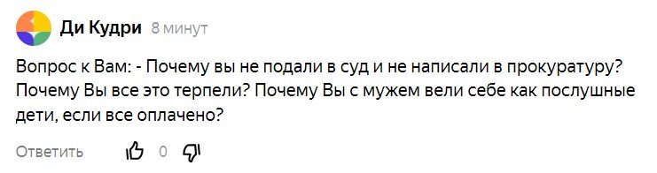 К вот этой статье: Слишком много вот таких вопросов: Они вполне закономерны, поэтому отвечу сразу всем. Во-первых, я жалею, что мы этого не сделали. Я восхищаюсь женщинами, которые смогли не только встать на этот путь, но и прошли его до конца. Пусть проигравшими, но высказавшими в лицо роддому свою боль. Как Джун Осборн! Во-вторых, я не могла по состоянию здоровья: В-третьих, я долгое время чувствовала себя виноватой во всём. И вот, почему. Я долго не могла понять, почему некоторые врачи любят обвинять и стыдить пациентов, и недавно мне рассказали, почему и зачем, и я вам расскажу, но вначале пара историй.⠀ Как-то раз у меня "не нашли" вену в районной поликлинике. Сказали, что у меня вены такие. Рядом сидел мужчина, ему сказали, что кровь густая - видите, не течёт. Может, у него и правда густая, но вот мои вены - прекрасные в плане удобства для втыкания иголок, о чём мне сообщают регулярно и... Сообщили снова - через 10 минут - в частной лаборатории, в которую я сбежала из поликлиники
