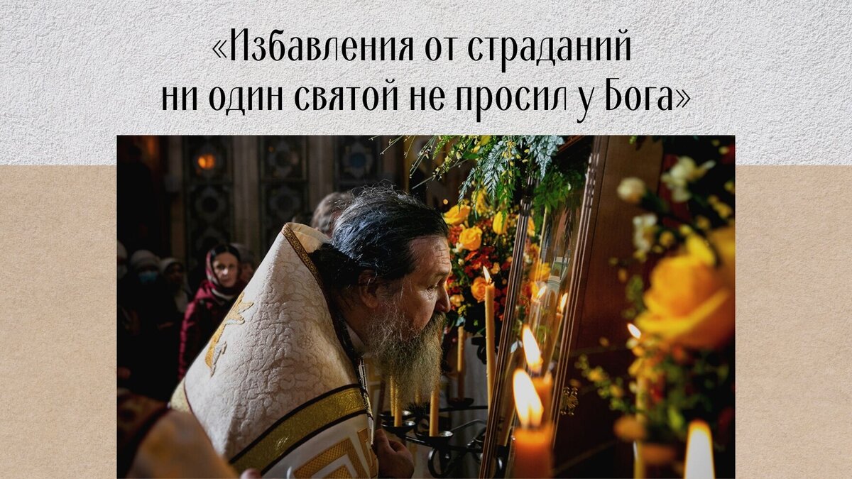 «Избавления от страданий ни один святой не просил у Бога. А просили все о даровании терпения. Если ты терпелив, то получишь и малую награду свою. А если не потерпишь, то ничего не заработаешь…»