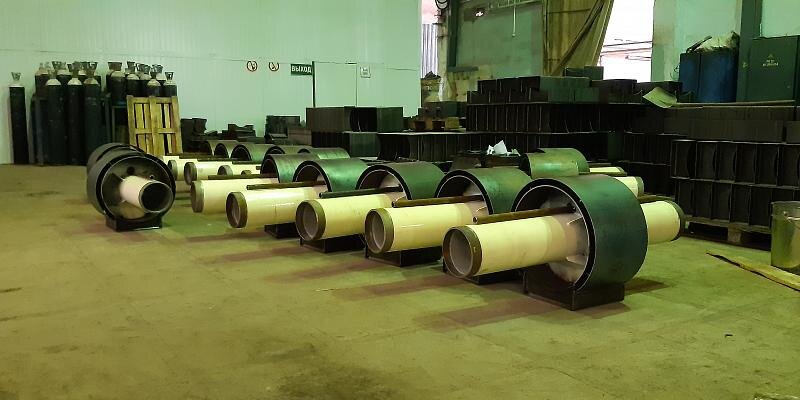 Неподвижные опоры для труб в ППУ изоляции обеспечивают жесткую фиксацию трубы и не допускают вертикальных и горизонтальных смещений, которые могут возникнуть в результате тока рабочей жидкости под давлением, а также в результате смещений грунта. Это становится возможным за счет конструктивного исполнения опоры, которая представляет собой отрезок стальной трубы подходящего диаметра под размер участка трубопровода со слоем ППУ изоляции и с приваренным к нему оголовком из металлической пластины. Для одной из строительных компания в производственных цехах компании ЗМК «Урал» были изготовлены неподвижные опоры тип 5-А для надземной прокладки с устройством электрообогрева Ст. 219х8,0-500х30-419 ППУ ОЦ. Проект реализовывался в период февраль-март 2021 года. Трубы в ППУ изоляции используются там, где необходимо защитить теплоноситель от преждевременного остывания. Чаще всего такие трубы используются в бытовых и промышленных теплосетях. Опоры не только фиксируют трубу, но и защищают ППУ изоляци