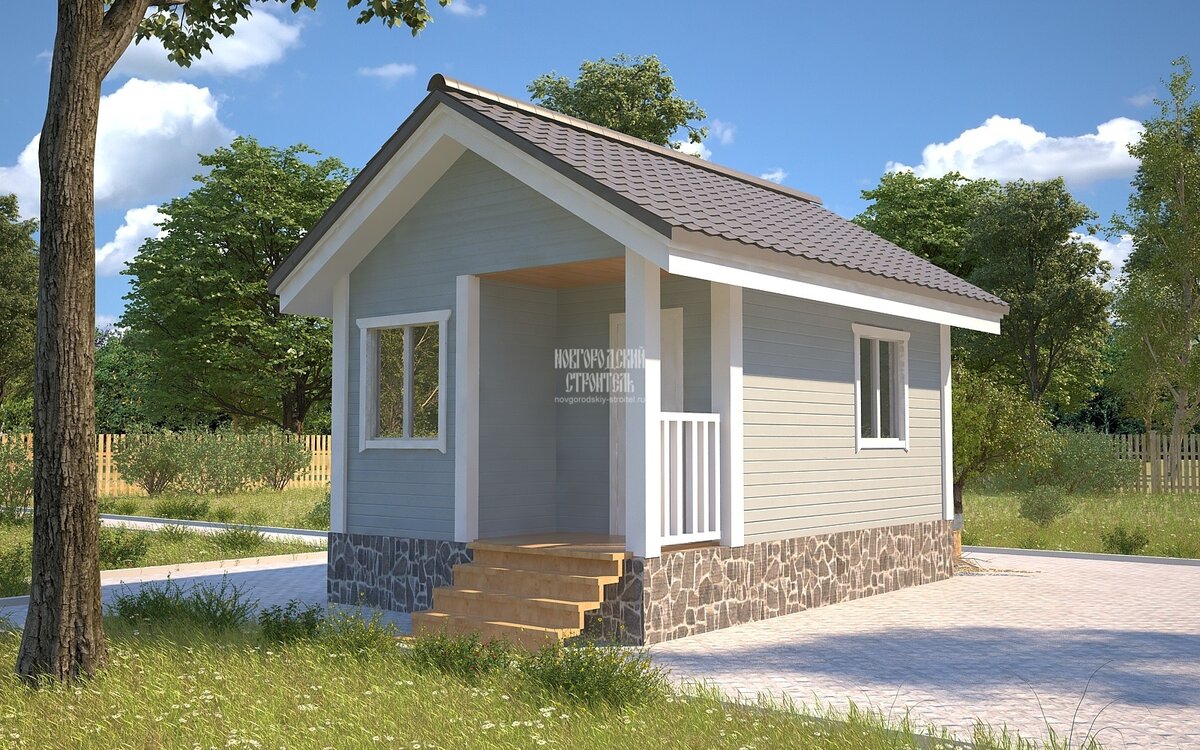 Этот небольшой одноэтажный дачный дом всего 6х4, его площадь 24кв.м, присутствует небольшая терраса (крыльцо). Этот дом подходит для небольших дачных участков, для людей кто не хочет вкладываться в большой загородный дом.