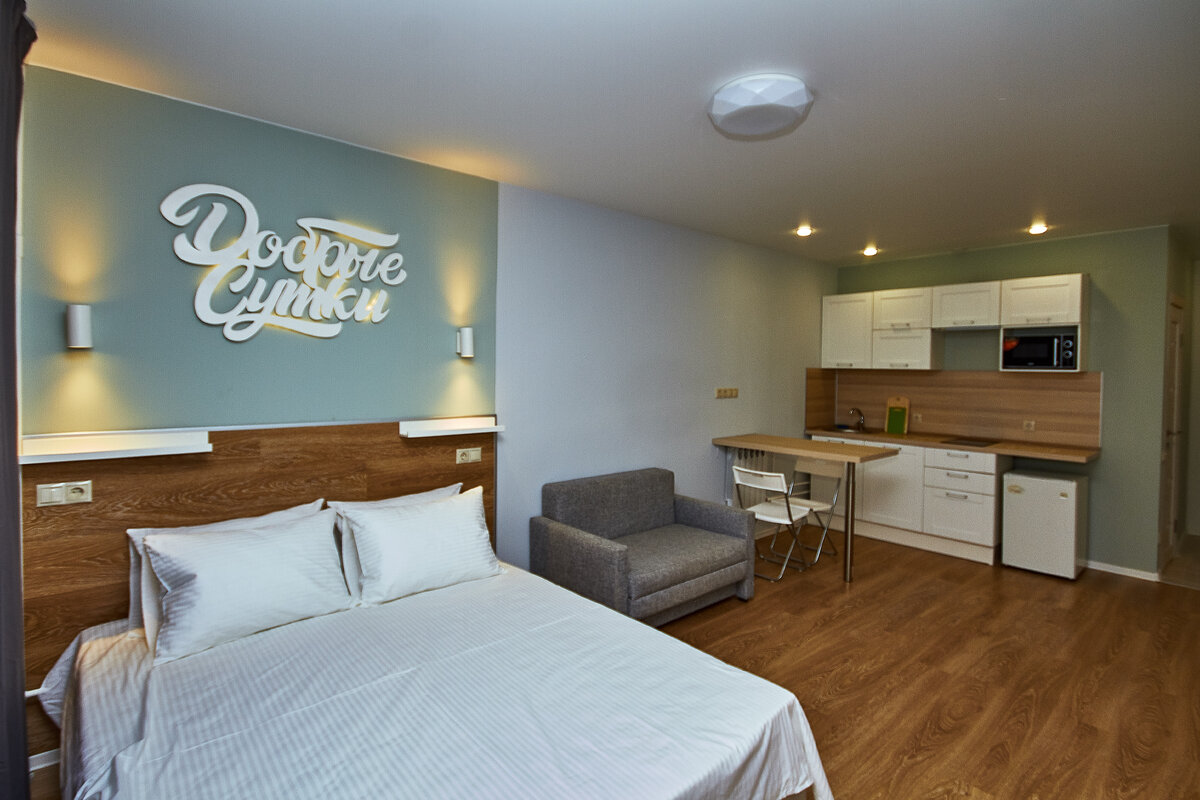 • Каждая квартира оснащена современной техникой, необходимой для комфортного отдыха: фен, телевизор с плоским экраном, бесплатный высокоскоростной Wi-Fi, утюг!