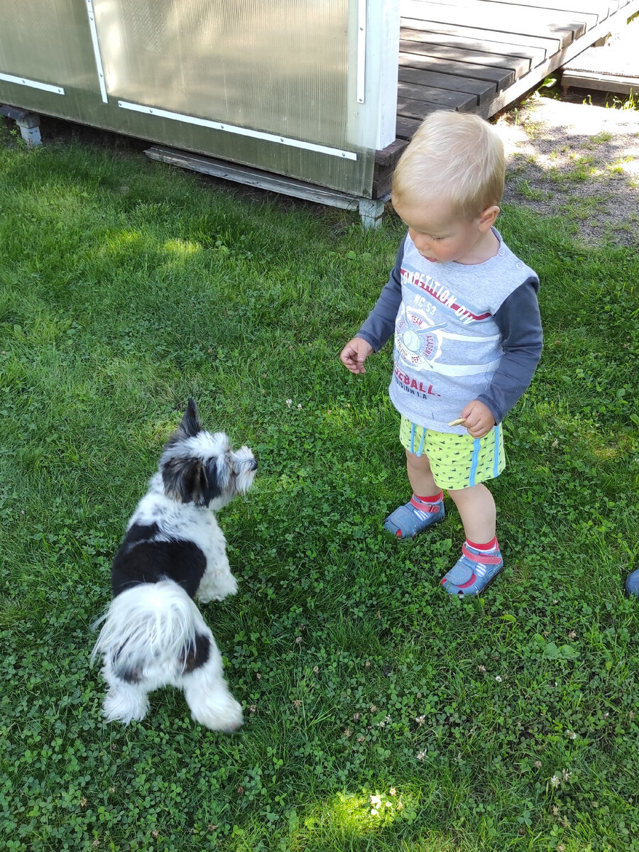 Собака, которая решила отстаивать своё место под солнцем, на коленях у хозяйки, свой элитный корм в мисочке, вызывает глубокое уважение или сочувствие, потому что она - очень доверчивое существо. Вчера этот маленький пёсик ещё не понимал всего масштаба бедствия, которое обрушилось на её беззаботную собачью жизнь. Этот пес смог подобрать ключик к суровому и неприступному хозяину, переубедил хозяйку больше не приглашать к себе в гости пёсика своей дочери, он довёл до совершенства все имеющиеся в доме предметы мебели. А тут попал... под влияние детей. С детьми он общается регулярно на даче, но общение его заключается в минутных объятиях, лёгких поглаживаниях и томных детских взглядах из-за забора. А тут первые сутки подходят к завершению, как на его участке появились на постоянной основе дети. Мои дети тоже не общались так тесно с собаками. Всю свою страсть к животному выдали сразу по приезду. Младший согласен только едой делиться с пёсиком, а собачка и не против, против хозяйка. На иг