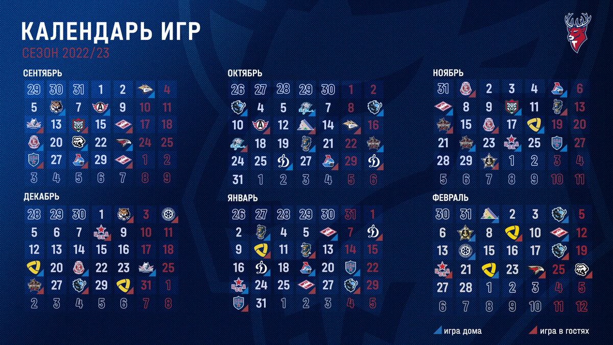 Регулярный чемпионат сезона 2022−2023 годов стартует 1 сентября. Континентальная хоккейная лига опубликовала полный календарь матчей регулярного чемпионата 2022/2023 годов. Сезон продлится с 1 сентября 2022 года по 26 февраля 2023-го. ХК «Торпедо» регулярный сезон КХЛ начнет с домашних игр. Так, 3 сентября нижегородские хоккеисты сразятся с магнитогорским «Металлургом». 6 сентября «Торпедо» сыграет с хабаровским «Амуром», а 8 числа — с «Автомобилистом» из Екатеринбурга. 12 сентября «Торпедо» на выезде сыграет с нижнекамским «Нефтехимиком», 14 — с казанским «Ак Барсом», 16 — с московским «Спартаком». 19 сентября «Торпедо» на домашнем льду встретится с московским «Витязем», 21 числа нижегородцы скрестят клюшки с хоккеистами челябинского «Трактора», 23 — с омским «Авангардом». 26 сентября ХК «Торпедо» сыграет со «СКА» на ледовой арене в Санкт-Петербурге, 28 сентября игра с «Локомотивом» пройдет в Ярославле, 30 числа — встреча со «Спартаком» в Москве. Каждая из команд КХЛ проведет 68 матче