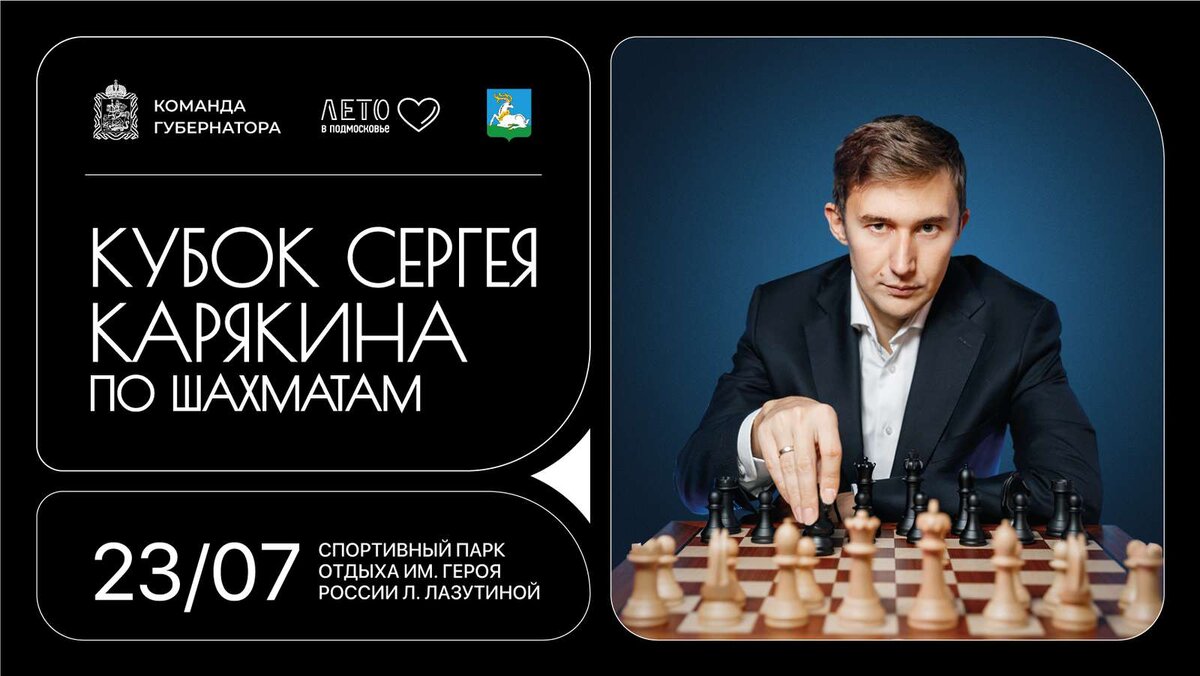 Масштабный турнир по шахматам на Кубок Сергея Карякина впервые пройдет в Подмосковье. Уникальные соревнования состоятся под открытым небом 23 июля. Сергей Карякин — чемпион мира по блицу и рапиду. Впервые шахматное событие такого формата состоится в Подмосковье. На одной площадке встретятся любители, профессионалы и звезды с мировым именем. Турнир пройдет в парке имени Ларисы Лазутиной в Одинцове. Как все будет? Участники не только сыграют на досках, но и пообщаются с Сергеем Карякиным. Турнир разделят на соревнования для любительской и профессиональной лиг. Сначала по швейцарской системе сыграют ребята до 17 лет — это 80 участников любительской лиги. Результаты определят призеров и 15 лучших шахматистов. Они сыграют с Сергеем Карякиным на одновременном сеансе. На профессиональном турнире встретятся 40 шахматистов из Подмосковья с лучшим рейтингом Федерации шахмат России. Выберут трех призеров. Для зрителей Гости смогут присоединиться к интерактивной программе и узнать интересные факты