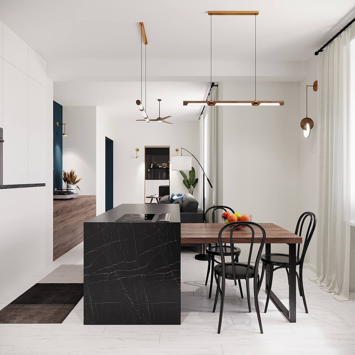 Лаконичность и функциональность – главные правила немецкого стиля баухауз. Это идеальный выбор для тех, кто любит городской ритм и динамичность. В трёшке 108м2 дизайнеры Domeo воплотили все черты баухауза: грамотно использовав анфиладное построение, сделали квартиру светлой, удобной и эргономичной. За счет дизайн-проекта сэкономили 270 тысяч: зонировали пространство островом, выбрали качественную имитацию камня и дерева и минимум декора. 🖤 Рассчитайте стоимость вашего идеального интерьера вот здесь. Бесплатно и быстро. Пишите + в комментарии, если понравилось контрастное сочетание цветов в интерьере 👇