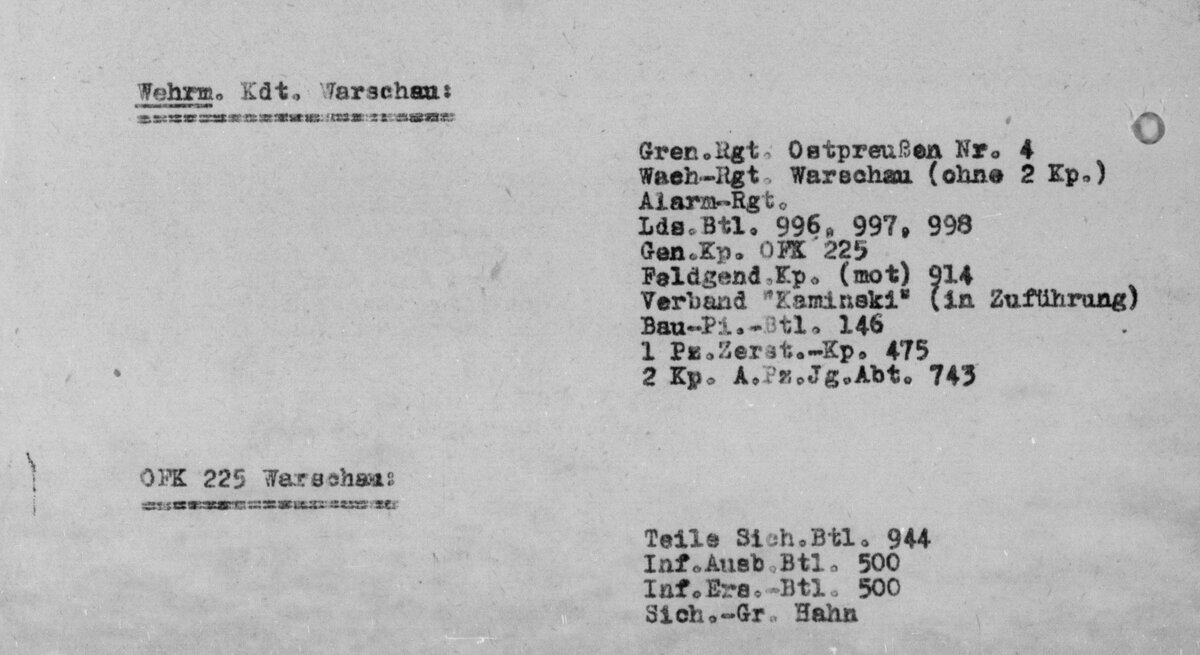 Лишь к 6 августа собрали части, хотя бы в минимальной степени бороться с восставшими. Набрали всего 4 тыс. человек. Вот список частей на 6 августа 1944 года (восстание продолжается уже 5 дней)