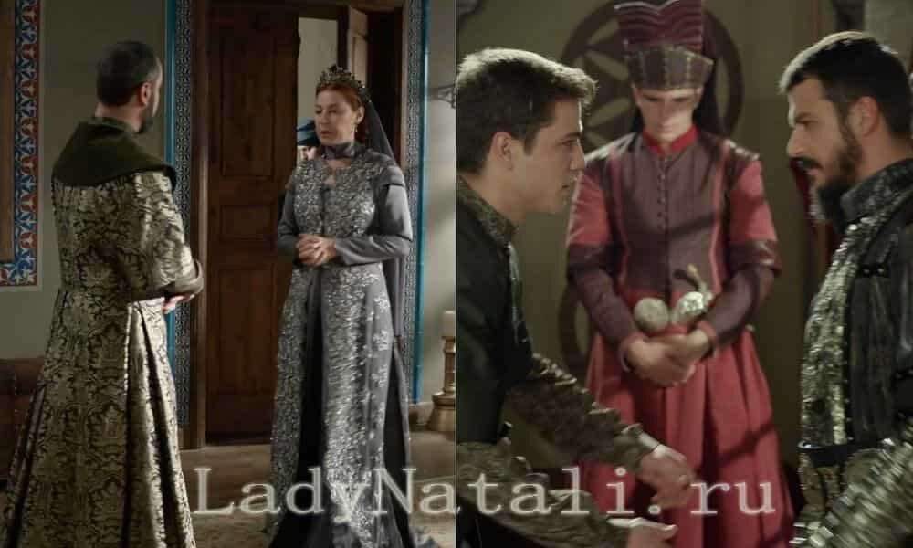 Хюррем султан встречается с Рустемом пашой и интересуется, как отреагировал повелитель на письма. Фатьма султан, в разговоре с Джихангиром, говорит, что не верит в случайную смерть Назенин. Лала Мустафа пытается донести Баязиду, что ничем хорошим присутствие Хуриджихан в Кютахье не кончится. Но шехзаде ставит ему условие – либо он с ним, либо он против него. Селим дал зарок повелителю, что не будет пить и старается выполнять его. Джихангир переживает за брата Мустафу. Он пытается поговорить с матушкой о письмах. Хасеки старается донести младшему сыну, что Мустафа их враг, но бесполезно. Разговор с отцом о Мустафе также неутешителен для Джихангира. 1 сезон Великолепного века 2 сезон Великолепного века 3 сезон Великолепного века 4 сезон Великолепного века Хюррем пишет супругу письмо и ждёт с ним встречи, но Афифе докладывает, что повелитель не хочет её видеть. Падишах приказывает пошить Мустафе кафтан. Вместе с подарком, Сулейман отправляет письмо сыну. От имени Джихангира приходит чело
