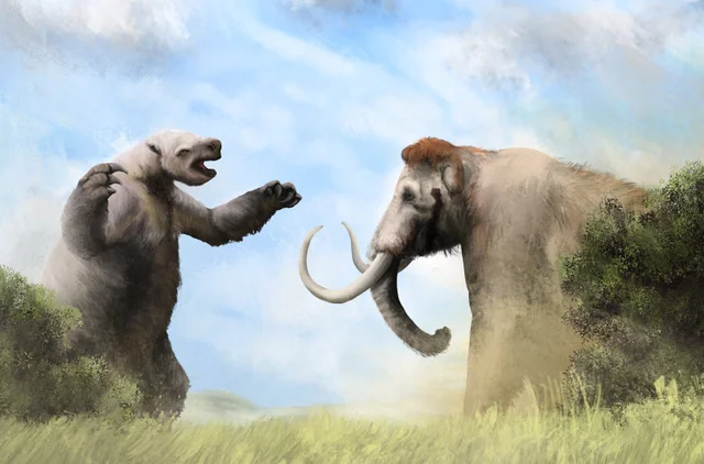 ...Жили в одно время с человеком Первые люди, заселившие американский материк застали гигантских ленивцев. Найдены свидетельства охоты людей на ленивцев и украшения из их костей. По одной из версий именно люди, а не изменение климата стали причиной исчезновения гигантских ленивцев. Параметры Мегатерии высота 6 м в 2 раза больше слона вес 3 т (вымерли) Двупалоленивцевые высота 3 м вес 1 т (существуют потомки) Милодоны высота 4 м вес 1 т (вымерли) Образ жизни Медлительные животные питались растениями. Длинные когти 15-17 см помогали склонять ветки и защищаться от хищников. Челюсти не были приспособлены к пережёвыванию животной пищи. Интересные факты 1) Главное отличие от нынешних ленивцев не только размер. Гигантские ленивцы вели именно наземный образ жизни ведь любое дерево бы сломалось от их веса. 2) Один из существовавших гигантских ленивцев вёл полуводный образ жизни. 3) У индейцев сохранилась легенда о чудо-звере из Амазонии. По всем признакам это гигантский ленивец, но группа учёны