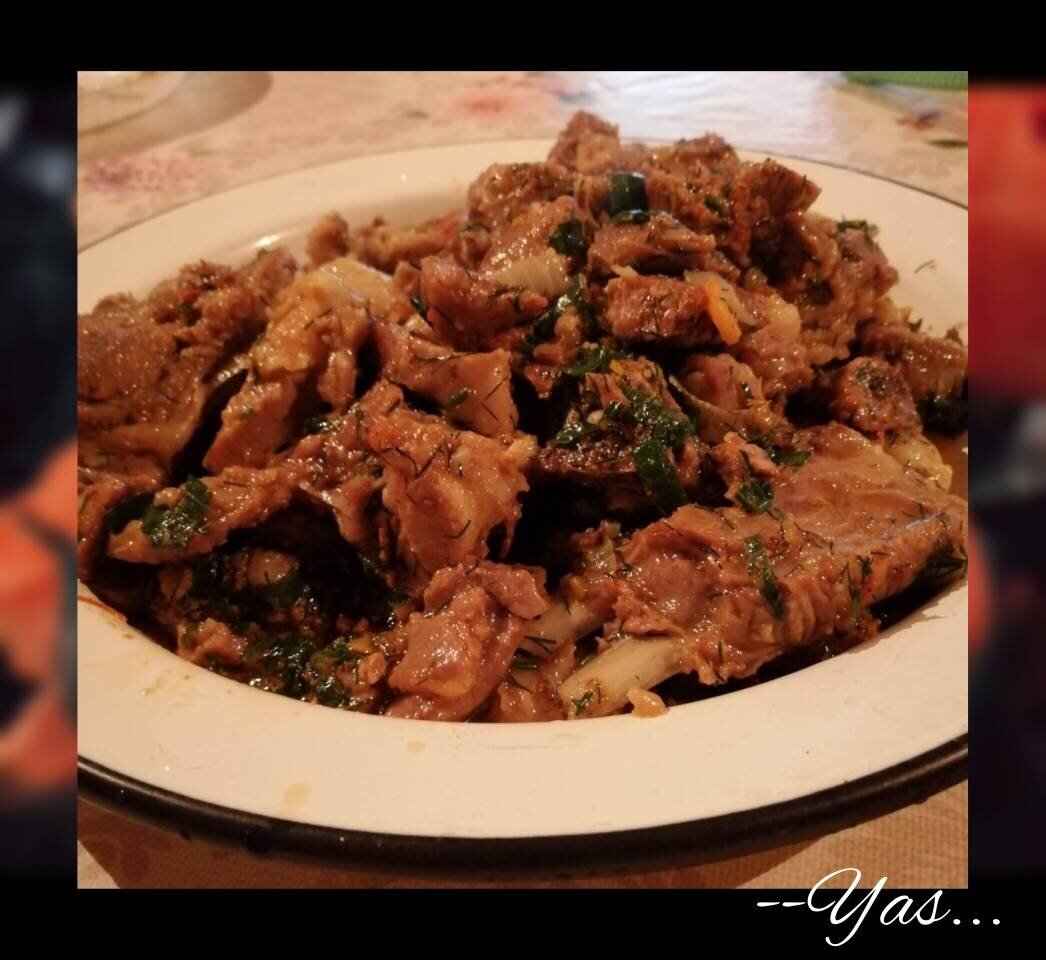 После СВЯЩЕННОГО ПРАЗДНИКА КУРМАН БАЙРАМ, у нас семейная традиция, жарить мясо в казане. И с каждым годом получается все вкуснее. Ингредиенты: Баранина, Вода, Лук репчатый, Лук зелёный, Укроп , Помидоры, Масло растительное, Морковь, Соль, Перец чёрный Способ приготовления: Мясо режем на кубики, количество и размеры зависят от ваших предпочтений. Моем и выкладываем в казан, заливая водой. Варим минут 30 -40, время варки завит от возраста животного. Если чувствуете, что мясо находится в полуготовном состоянии, то снимаем с огня. Воду выливаем, мясо остаётся в казане. Ставим на средний огонь пока лишняя влага не выпарится. После того как вода выпарилась, добавляем масло и начинаем жарить. Добавляем лук, морковь и помидоры. Помидоры сделают мясо сочным. Жарим до готовности, периодически помешивая, чтобы не пригорало. За 10 мин до готовности добавляем зелёный лук и укроп, соль, перец перемешиваем. Жарим до готовности.