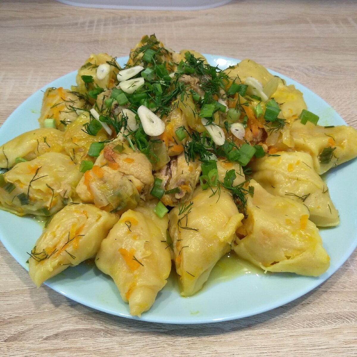 Сегодня хочу вам рассказать как приготовить нудли с курицей. Это очень сытное и вкусное блюдо. Мужчины будут в восторге) Ингредиенты: Курица 500гр можно больше, хуже не будет. Капуста 500 гр Лук 2 шт Морковь 2 шт кетчуп 1 ст.л. соль, специи по вкусу зелень чеснок масло для жарки (у меня растительное+ сливочное) Для теста : 3 ст. муки 0,5 ч.л соли 1 яйцо 3 ст.л раст. масла Как приготовить тесто я подробно написала вот тут: https://zen.yandex.ru/media/id/620e4fdf56ecf07f468fa18e/testo-na-kipiatke-dlia-pelmenei-cheburekov-mantov-samsy-i-td-62af313a851619686ec2c288 Подойдет любое тесто для пельменей и т.д. Лук нарезать кубиками, морковь потереть на терке и жарить в масле. Посолить добавить специи. Это начинка для нудлей. Я делю её на 3 части для удобства. Тесто разделить на 3 части. Раскатать тонко, выложить равномерно 1/3 начинки. Скатать рулетом и нарезать на ромбики. Теперь они должны полежать пока мы приготовим для них "подушку" из курицы и овощей. Курицу нарезать кусочками примерно