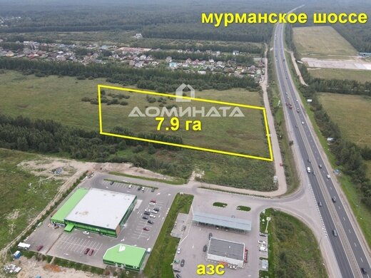 Кадастровый номер: 47:07:1047005:0052 Участок ровный, сухой, правильной формы. 1-ая линия Мурманского шоссе. Ширина — 262 метра, длина — 353 метра. Съезд с трассы в сторону СПб. Отличные подъездные пути, асфальтированная дорога прям к участку.