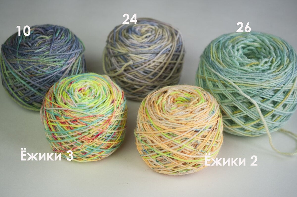 Основной эффект новой шали Галактика строится на цветовой гамме. Если брать только схему вязания, то ничего особо интересного в ней не будет и вязать ее однотонную из фабричной пряжи одного цвета я большого смысла не вижу, получится неинтересно. А вот в правильно подобранном сочетании многих цветов она выглядит потрясающе. Для начала давайте посмотрим какие цвета я выбрала для этого проекта, а потом я расскажу подробнее о базовых принципах сочетания цветов, благодаря которым вы сможете легко подобрать такие цвета, которые понравятся вам лично. Всего я задействую 5 цветов. Это все пряжа моего ручного окрашивания. Подойдёт любая пряжа в пределах 300 - 400, просто физические размеры шали будут немного разными, что для шали не принципиально. В принципе в одной вещи можно использовать нитки разной толщины в этих пределах, разница нивелируется при вязании. Это очень актуально, если вы захотите пустить на нее остатки и клубочки из запасов. 🍓 И конечно же все цвета можно приобрести в магази