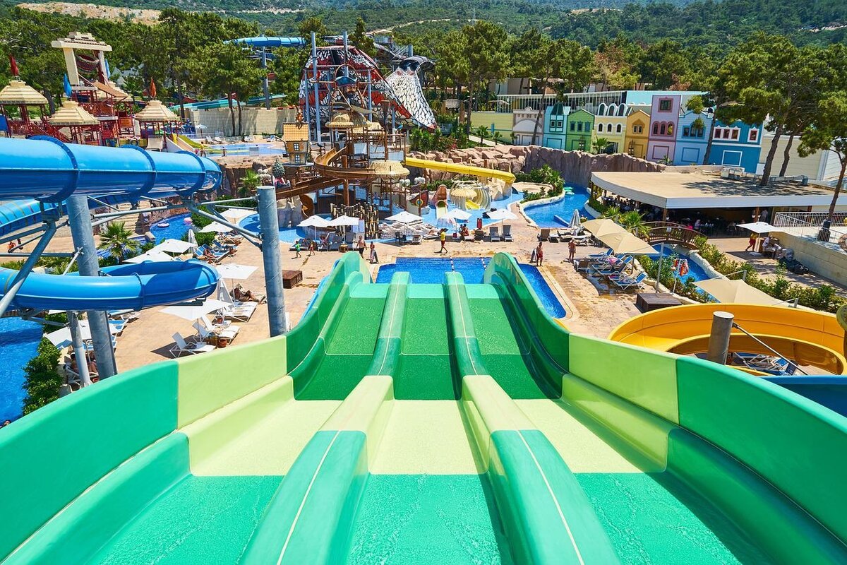 В аквапарке множество самых разных водных горок, а также детский клуб.