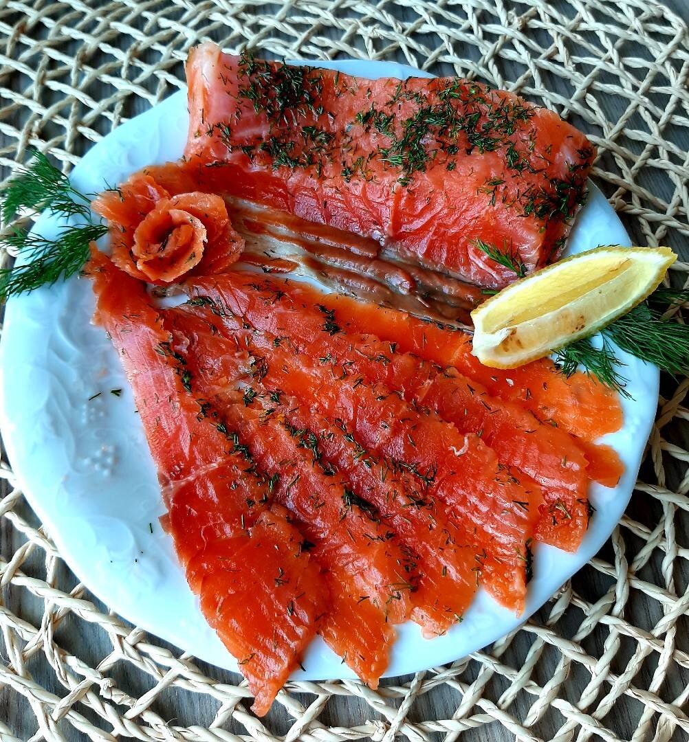 Ингредиенты: филе красной рыбы на коже (у меня черноморский лосось), крупной соли, коричневого сахара, Цедра одного лимона, смеси перцев горшком, укропа Способ приготовления: Рыбку хорошо просушиваем и удаляем все кости. Соединяем вместе соль, сахар, мелко нарезанный укроп, цедру лимона и перец. Берём глубокую посуду, так как рыба даст сок. На дно посуды насыпаем буквально пол столовой ложки солевой смеси, сверху кладём кусочек рыбы посыпаем его оставшейся солевой смесью. Накрываем сверху вторым кусочком рыбы и немного присыпаем солевой смесью. Хорошо закрываем пищевой плёнкой, кладём небольшую разделочную доску на рыбку и небольшой груз. Отправляем рыбку в холодильник на 12-24 часа, в зависимости от того, какой просолки рыбу Вы любите. Я засаливала рыбку 12 часов, через 6 часов я её перевернула на другую сторону. Готовую рыбку промываем в холодной воде и очень хорошо просушиваем бумажными полотенцами. Немного можно смазать оливковым или растительным маслом и можно подавать к столу При