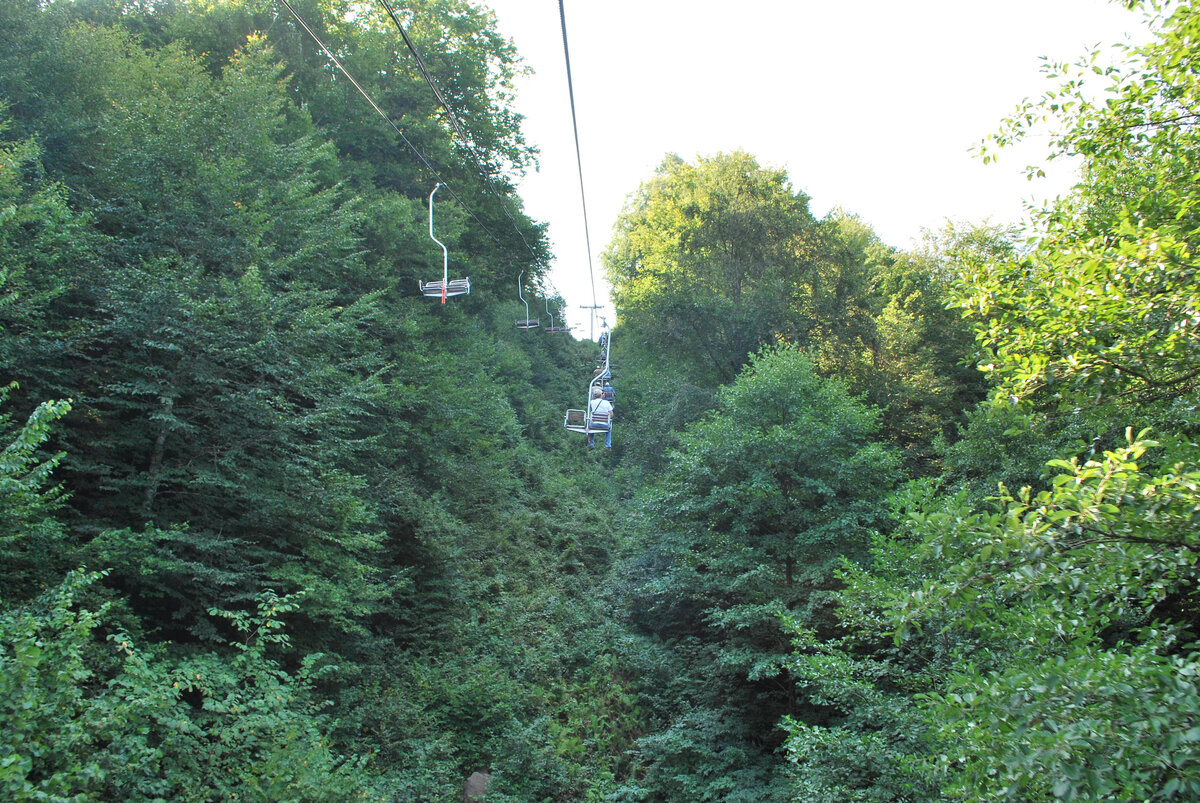 Это последний из рассказов про старую дорогу из Адлера до Красной поляны в период #сочидоолимпиады . Когда и горы были зеленее и канатка была по хуже. Да и в целом за мостом через Мзымту была только торговая площадь, автобусная остановка, да нижняя станция кресельной канатки. По ней мы и направимся вверх до вершины. Подъем со всеми пересадками занимает практически час времени. Зато с каждой минутой подъема взору открывается все новый вид окружающих красот... Самый же веселый аттракцион на канатке, это путь вниз - взор ни во что не упирается, под ногами земли не видно, качаешься такой себе не ветру на высоте пары тысяч метров - красота, аж жуть как страшно... Поднявшись на гребень предлагаю прогуляться по нему как, и было обещано ранее, до вершины Черной пирамиды. Для чего направимся направо от канатки по тропинке, бегущей практически по гребню гор. Вот она хорошо видна на фото выше. Погода за нас, поэтому видимость отличная. Тропинка сбегает сначала вниз, а затем поднимает нас на небол