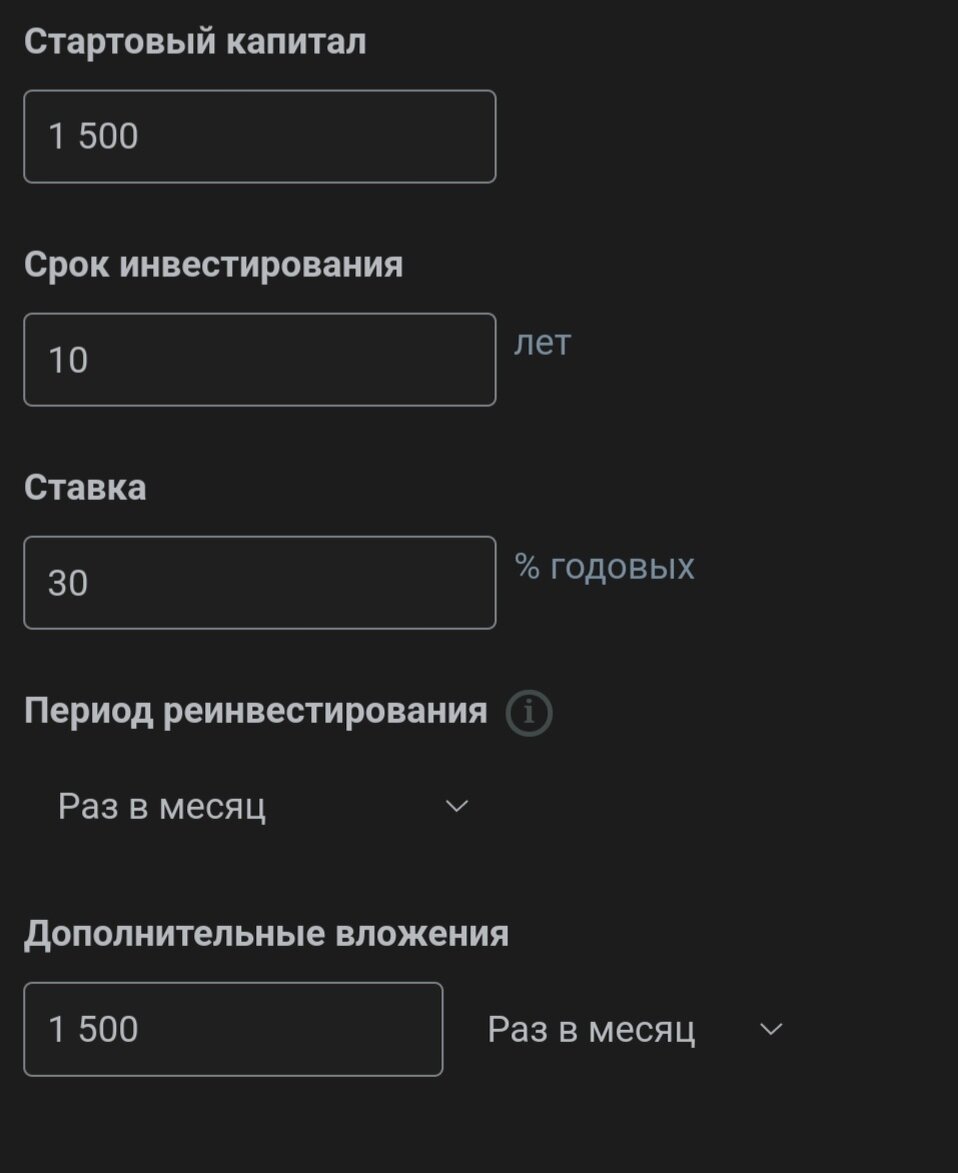 50 рублей конечно смешная сумма, но это может быть отличным подспорьем в сложные времена. Достаточно покопить по 50 руб. в день и вложить их в акции, в криптовалюту. Экспериментировать с 50 руб. в день не страшно и не жалко. Так за 10 лет, ваши 50 руб. в день превратятся в - 1.1 млн.руб. Не плохо для 50 руб. в день? Вот полный расчёт: Средний доход 30% в год. Заработать 30% в год возможно даже новичку. Стоит лишь начать разбираться. Да, я знаю, что вы скажете - биржа это лохотрон. Да подставы есть в виде политики, например. Но биржа тут не при чем, это не биржа решает, а правительство. Лучше попробовать, чем сидеть ни с чем. 1.5 тысячи в месяц может отложить абсолютно любой человек. Огромное значение играет лишь желание начать разбираться в этом. Вывод Сейчас, когда рынок рухнул, самое время начать с нуля. Рисков почти нет. Всё самое плохое уже произошло. Рынок на дне. И как раз на такой ситуации стоит начать зарабатывать, вложить в своё будущее. #жизнь #люди #инвестиции #акции #би