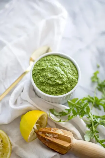 Менее чем за пять минут, следуя этому рецепту, вы получите восхитительный зеленый соус, который полон питательных веществ и делает вкуснее практически все, к чему прикасается. Идеальное дополнение к мясу, овощам на гриле, пасте, яичнице или салатам. То, что песто традиционно готовят из базилика, не означает, что вы должны соблюдать это правило. На самом деле есть только базовый рецепт песто, которому нужно следовать, но вы можете поменять типы трав / зелени, которые используете, разнообразие орехов, специй и т. д. Основной формулой соуса песто является: 2 стакана зелени (базилик, руккола, кейл, шпинат, кинза, петрушка, мята, зелень свеклы, ботва моркови) + 1/4 стакана орехов (кедровые орехи, миндаль, грецкие орехи, фисташки) +1/4 стакана кислоты (лимонный сок или разнообразные уксусы) + 1/4 стакана сыра пармезан ( Примечание: если вы хотите сделать этот песто веганским, вы можете отказаться от сыра пармезан и заменить его несколькими столовыми ложками пищевых дрожжей). + основные ингре