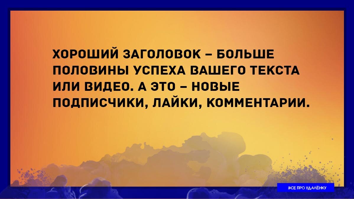 Золотая рыбка в аквариуме склерозом не страдает. У нее просто емкость памяти 3 секунды. Беспечный интернет-серфер настолько перегружен информацией, что у вас тоже есть ровно 3 секунды привлечь его внимание. Единственное средство это сделать – написать классный заголовок, чтобы стимулировать человеческое любопытство прочитать, а что же дальше? Есть три вида заголовков, которые можно и нужно использовать. Вот они: Теперь о каждом из этих видов с конкретными примерами. Заголовок-польза А посмотрите на заголовок этого текста. Да, согласен, выглядит немножко длинным. Только фишка в том, что тот, у кого «болит» - мало просмотров постов, мало лайков или комментариев, точно захочет узнать, что и как делать, чтобы ситуацию изменить. Заголовок-название Примеры: «Как я съел собаку», «Человек, который принял жену за шляпу», «Охота на овец». Важно! Заголовок-название говорит о том, что будет происходить внутри текста. А потому вряд ли к тексту, в котором нет ни слова о музыке, дороге или траве подо