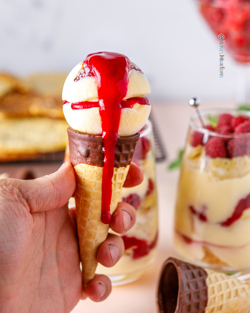 Рецепт конфи и заварного крема смотрите в фотографиях. 3. Есть два пути: простой и замороченный. В простом варианте слоями выложите крошеное тесто, конфи, крем и малины в стаканы, накройт