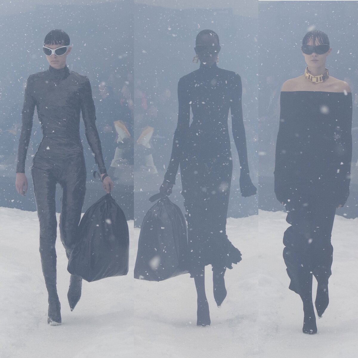 Довольно долго я не решалась сделать обзор коллекции Balenciaga FW’22 RTW, и не только потому что ничего не видно и не понятно. Хотя, конечно, за снежной пеленой коллекция любопытна, как всегда. Демна Гвасалия всегда заслуживал внимания как дизайнер. Почему? - спросите Вы. Да бог его знает… Любят люди все необычное - то, что заслуживает либо любви, либо ненависти. С одной стороны, это хорошо - равнодушных нет. А с другой, в этом и опасность, ведь к его мнению многие прислушиваются. К сожалению, рассмотреть эту коллекцию практически невозможно из-за снега, но в ней полно интересных вещей, если зайти на сайт. Крутой деним оверсайз, необычные ботфорты, да и обувь в целом. Украшения самых причудливых форм, интересные аксессуары. Обилие меха, что и понятно. Помимо любимого Демной черного, в коллекции довольно богатая палитра красок и даже принты. И все же почему так много снега? «Я ходил в горы на прошлое Рождество, и там не было снега» - рассказывает Демна, мягко подводя нас к эколо