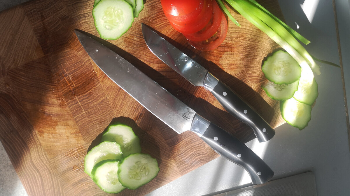 Вы уверены, что правильно обслуживаете свои кухонники? Вопрос этот непраздный, ведь от этого зависит, насколько острыми будут оставаться клинки. В этой статье дам несколько элементарных и простых советов, которые помогут вам упростить уход за ножами. Мытье Я не зря советую всем выбирать кухонные ножи из качественной пищевой нержавеющей стали. Если для клинка использовался хороший коррозионностойкий сплав, то лезвие не будет ржаветь. А вы сможете резать такими ножами лимоны, апельсины и любые другие фрукты, ягоды и овощи. И при этом не бояться, что лезвие покроется пятнами или заржавеет. Итак, предположу, что у вас дома именно кованые нержавеющие ножи. Тогда возьмите себе за правило очищать их всякий раз, когда использовали их. Даже если они эксплуатировались непродолжительное время. Даже если вы резали ими только хлеб. Мыть клинки нужно тоже правильно. Не кладите их в раковину и не замачивайте. Просто протрите лезвие губкой и промойте под проточной водой комнатной температуры. А вот ки