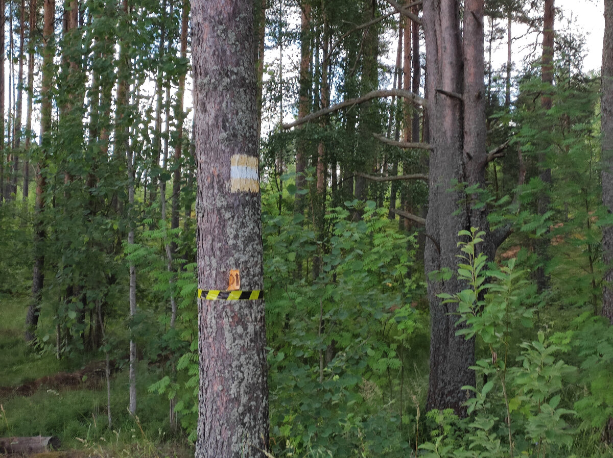 Мы приехали электричкой на станцию Петяярви. Здесь расположен заказник «Гряда Вяряменселькя», это в центральной части Карельского перешейка, к югу от Вуоксы и озера Суходольского. Совсем недавно в Лосево мы поднимались на гору, чтобы краешком глаза посмотреть на гряду. Территория уникальна своим ландшафтом и лесом, который там вырос. Есть пешеходные и велосипедные экологические маршруты, установлены щиты и указатели. Тропа промаркирована жёлто-белой краской. В этот раз у нас был свой маршрут, не только по проложенной экологической тропе, хотя и по ней мы тоже прошлись. Перейдя железнодорожные пути мы отошли метров 300 назад. Здесь парковка для автотранспортных средств и начинается экотропа. Не успев на неё зайти, свернули на тропинки на холмистых ледниковых грядах. Кругом чистый, светлый сосновый лес на склонах холмов. Приходиться то подниматься, то спускаться. Вот и первое озеро Ликолампи. Их вообще-то два, разделённых холмом. Мы остановились на большом, там где песчаный спуск и хор