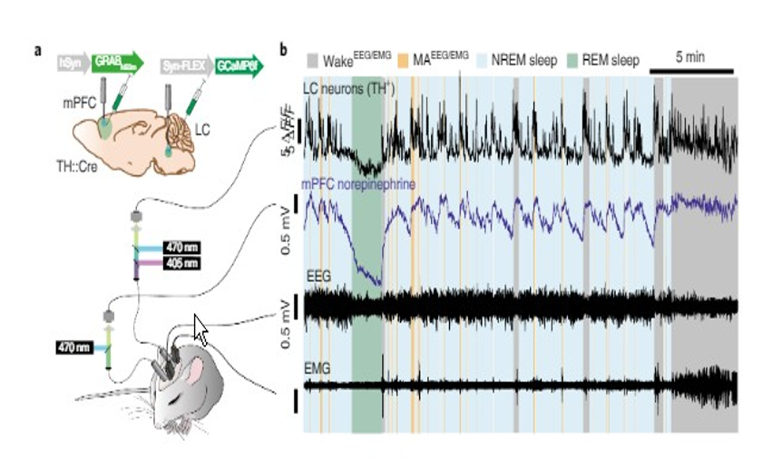 Исследователи из Копенгагенского университета обнаружили, что колебания уровня норадреналина во время сна полезны для памяти. Результаты исследования опубликованы в журнале Nature Neuroscience. Credit: Celia Kjaerby et al. / Nature Neuroscience 2022 Большинство людей считают, что хороший сон должен быть непрерывным. Но по мнению датских исследователей, все не так однозначно. Норадреналин, который вырабатывается в голубом пятне (ядре или скоплении нейронов, расположенном в стволе мозга), заставляет наш мозг просыпаться более 100 раз за ночь. Эти моменты очень кратковременные, поэтому чаще всего спящий их не замечает. Таким образом, когда мы спим, уровень норадреналина в организме постоянно волнообразно снижается и повышается, из-за чего во время пиков возникают незаметные для нас микропробуждения. Исследователи обнаружили, что продолжительное снижение уровня норадреналина связано с возникновением сигма-ритма. Сигма-ритм (сонные веретена) появляется в начальной стадии медленного сна. Сч
