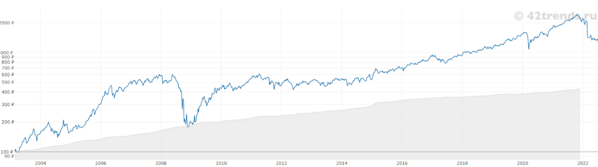 И я показал наш российский рынок, чьи компании испытывает серьезное экономическое давление из-за санкций еще с 2014 года, а наиболее популярным и прибыльным будет американский индекс SP500.