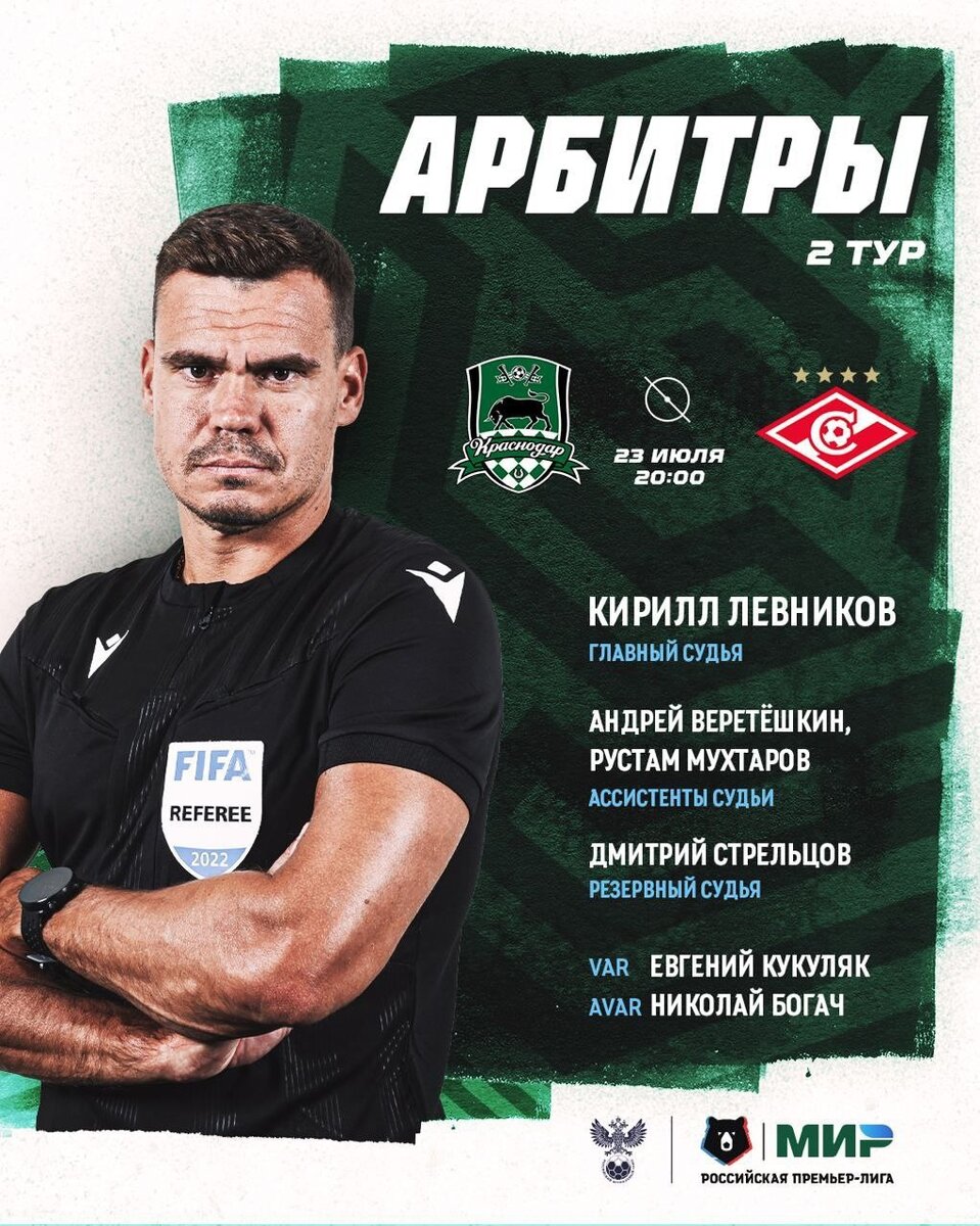 Кирилл Левников — главный арбитр матча «Краснодар» - «Спартак»