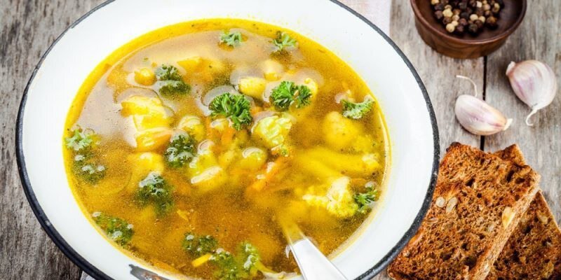 Ингредиенты: Сухой горох - 200 гр Вода - 1,5 л Картофель - 2-3 шт Морковь - 1 шт Замороженные или свежие соцветия цветной капусты - 100 гр Лавровый лист - 2 шт Куркума - ½ ч. л. Соль — по вкусу Молотый чёрный перец — по вкусу Сливочное масло - 2 ст. л. Петрушка - 2-3веточки Сметана - 3 ст. л. Приготовление: Предварительно замочите горох на ночь. Затем залейте его примерно половиной воды и варите, пока он не станет мягким. Влейте остальную воду и доведите до кипения. Добавьте к гороху кубики картошки и моркови, цветную капусту, лавровые листья, специи и масло. Варите 20–25 минут, пока овощи не размягчатся. Добавьте в суп рубленую петрушку. По желанию — добавьте также сметанц и перемешайте. Приятного аппетита!