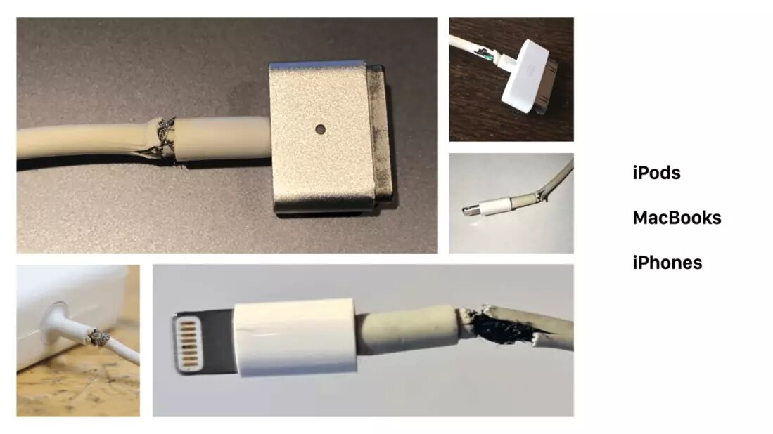 Большинство владельцев айфонов испытывали сложности из-за кабеля зарядки. Оплетка расщепляется или перетирается, дальше начинаются проблемы с зарядкой. Такие проблемы есть у многих продуктов Apple, от iPod до MacBook.