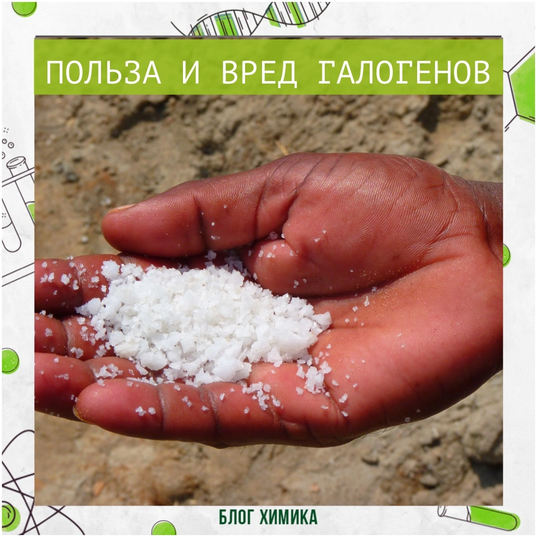 #Галогены на @blogximika 📋Неорганическая химия - в целом, довольно простая. Если понять химию элементов первых двух периодов таблицы Менделеева и осознать закономерности дальнейших изменений, то значительную часть можно не учить, а просто предсказывать исходя из имеющихся знаний. Начнем с галогенов. 🟨Фтор - самый химически активный элемент. Когда он окисляет (забирает электрон) другие атомы, выделяется много энергии. Поэтому в природе можно встретить только фториды, ионы F(-), а не чистый F2. 🦷Фтораппатит - важный компонент зубной эмали. Но избыток фтора опасен, поэтому фторсодержащую зубную пасту стоит использоать только если в вашей питьевой воде не слишком много F(-). 🟩Хлор в виде желто-зеленого газа мало кто наблюдал. А вот его раствор в щелочи известен многим как хлорный отбеливатель, который более эффективен, чем "кислородный", но может вызывать развитие аллергий и отравления. 🧂Соединение хлора, любимое и ненавидимое многими - поваренная соль, хлорид натрия. Как избыток