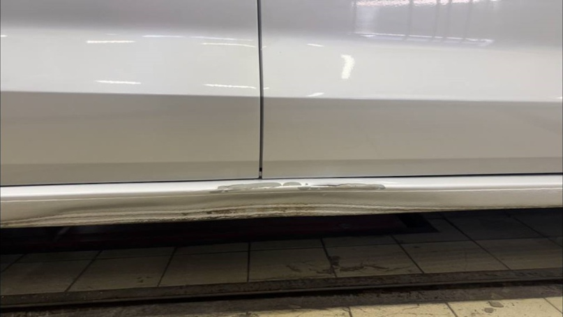 Если встреча с поребриком закончилась предсказуемо, то эта статья для Вас =) Рассказываем про технологию восстановления помятых порогов. Целиком весь процесс выглядит примерно так: 1) Мойка автомобиля; 2) Удаление антигравийного покрытия и подготовка рабочей поверхности к ремонтному воздействию; 3) Вытягивание вмятин спец. инструментами; 4) Проверка геометрии ремонтируемой детали; 5) Демонтаж дверей, укрытие проемов защитным материалом; 6) Обезжиривание и подготовка поверхности к шпаклеванию; 7) Выравнивание геометрии металла шпаклевкой с последующим шлифованием; 8) Грунтование поверхности; 9) Нанесение антигравия; 10) Подготовка под окраску; 11) Окраска, сушка и нанесение лака; 12) Полировка детали. Первым делом мастер изолирует поврежденную деталь от близлежащих поверхностей армированным скотчем, чтобы не повредить их в процессе работ, а затем зачищает порог от старого покрытия при помощи шлифмашинки MBX. Далее жестянщик приваривает проволочную “змейку", чтобы “гребенкой” вытащить на