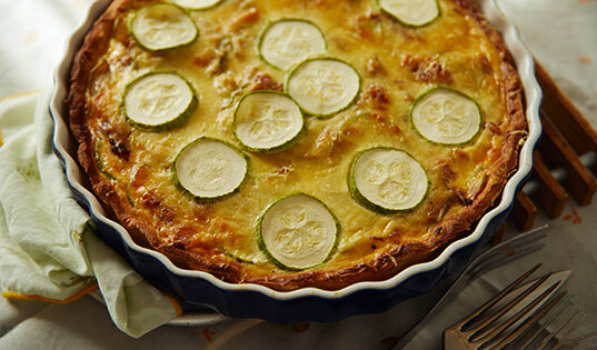 Не знаете, что делать с богатым урожаем кабачков? Соседям и родным предлагали? Вот и напрасно! Оставляйте все кабачки себе, потому что приготовив наш вкуснейший летний пирог единожды, вы будете часто его готовить 😋. По-летнему простой и вкусный киш со свежими кабачками и обжаренным беконом на готовом слоёном тесте можно приготовить хоть на ужин, хоть на перекус, хоть на пикник, хоть к приезду гостей - даже нежданных! На подготовку ингредиентов у вас уйдет не больше 10 минут - разве не прелесть? Вам понадобится: Тесто слоеное 500 г