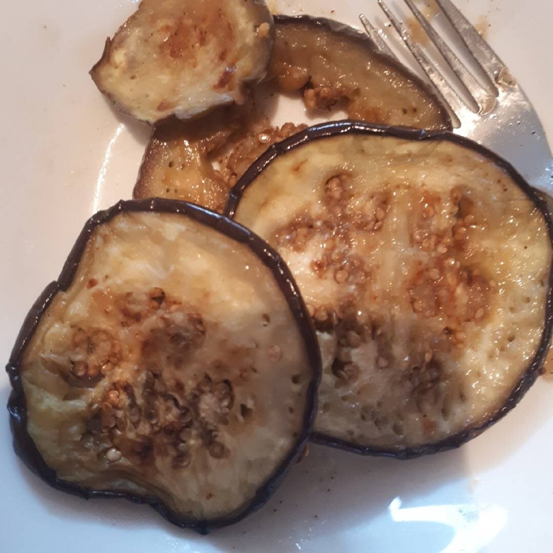 Получилось очень вкусно, сытно и не жирно. Я ещё сделала к ним суперминималистический соус из натёртого на мелкой тёрке чеснока, яблочного уксуса и растительного масла. Получился веган-вариант (хоть я не веган), поела немного, и больше ничего не хотелось. Также такие баклажаны отлично подойдут для мусаки. #баклажаны #веган #vegan Ингредиенты: Баклажаны, соль, проточная вода, растительное масло Способ приготовления: Нарезанные баклажаны надо сначала посыпать солью и дать постоять 5-10 минут, чтобы дали сок. Потом промыть водой и обсушить. Потом в миску с баклажанами налить немного масла, и повозюкать их там, чтобы они все покрылись маслом. Жарить на сильно разогретой сухой сковороде с двух сторон.