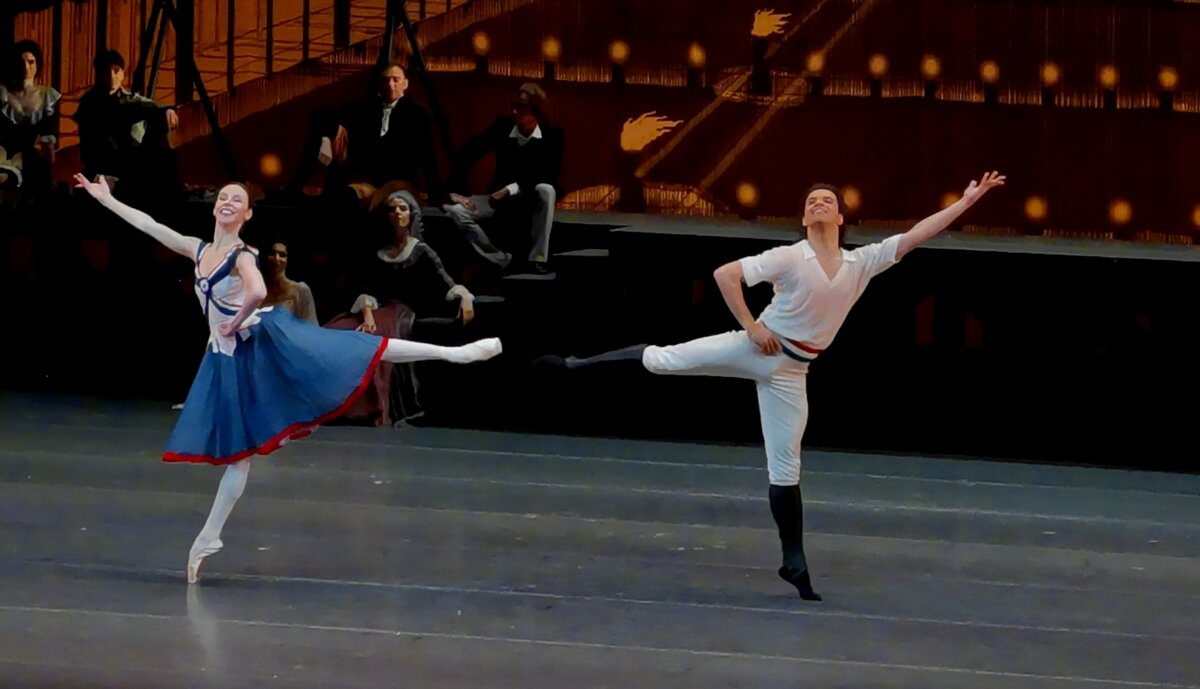 Пламя Парижа Кристина Кретова Игорь Цвирко Анна Никулина Денис Савин Мария Виноградова Артём Овчаренко Сегодня был отличный спектакль насколько это может быть для меня Пламя Парижа в редакции Алексея Ратманского. Первый акт часто вызывает во мне приступ сонливости, но в этот раз меня спас очень красивый дебют утонченной, игривой и очень техничной Марии Виноградовой. Какая же Мария виртуозная красавица. От всей души поздравляю Вас с дебютом. Образ, темпы, техника были потрясающими. Дуэт с Артемом как всегда был прекрасный! Главные герои вплоть до поклонов были Игорь Цвирко и Кристина Кретова. Давно хотел сходить на их спектакль. Всё таки химия их дуэта потрясающая. Дуэт во 2 акте мне очень понравился. Кристина сегодня была боевая и технически интересная. Начиная с дуэта 2 акта и заканчивая кодой у них был блестящий спектакль. Мне очень понравилось! На вариации Игоря одна девушка рядом в соседнем ряду кричала в Голос. Единственное мне не очень понравилось - это танец Басков,