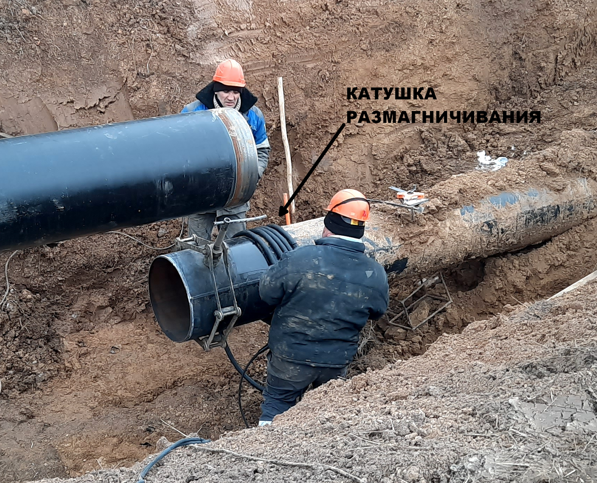 Сварка труб при проведении ремонтно-восстановительных работ на магистральных трубопроводах, как правило, выполняется методом ручной дуговой сварки при использовании электродов с основным или целлюлозным видом покрытия. При этом сварка коренного шва на постоянном токе часто сопровождается эффектом магнитного дутья, проявляющемся в срыве и отклонении электродуги в стыке вследствие высокой остаточной намагниченности труб. Намагниченность металла труб возникает из-за применения внутритрубных магнитных диагностических снарядов для оценки состояния толщины стенки металла и выявления дефектов газопроводов высокого давления. Вследствие чего магнитное поле в стыке труб может достигать величин 100-150 мТл (1000 — 1500 Гс) и более. Высокое магнитное поле приводит к ухудшению стабильности сварочного процесса, разбрызгиванию металла в сварном шве и образованию дефектов типа пор, несплавлений, непроваров, шлаковых включений. Компания НЕВА-Техника производит устройства размагничивания труб для стабил