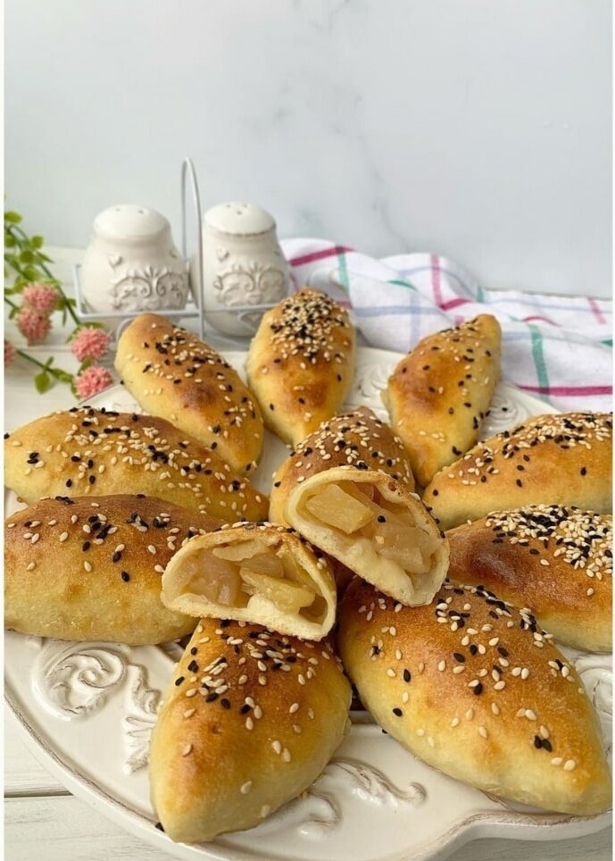 Ингредиенты: Кефир-500мл Сахар 1ч.л Сода 0.5ч л гашеная уксусом Щепотка соли Оливковое масло 2/3ст.л Мука пшеничная 600г худеющих могут заменить на полезную ц/з Начинка : Яблоки 1кг Сахар по вкусу Приготовление : Муку просейте,добавьте соду, сахар, кефир и замесить тесто, оно должно получится мягким, немного липнующим к рукам. Скатайте тесто в ком и займитесь начинкой. Для начинки яблоки нарезаем мелкими кубиками. Тесто разделите на равные части, раскатайте и выложите начинку(примерно по 1.5ст л) Выпекаем пироги 25-30минут при 180гр до румяной корочки. Всем приятного аппетита!!! Подписывайтесь на канал и ставьте класс ❤️🤗 #еда #рецептыпп #рецепты #выпечка #Пирожки