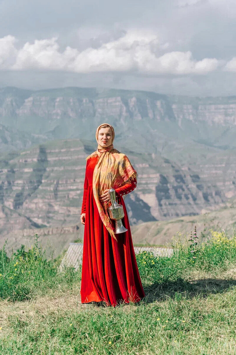 Интересно девки пляшут, а? Эту информацию о традиционных правилах «дейтинга» поведал мне наш экскурсовод. Раньше актуальных дагестанских невест можно было «посмотреть», когда они ходили за водой с кувшинами. Дом-то он, наверное, скрыт от посторонних глаз, а ключ или родник - вполне публичная территория. Кувшины были двух видов - для незамужних и замужних. У «свободных» девушек было узкое горлышко, а у состоявшихся жён - широкое. Интересно, широкий кувшин - это символ уже рожавшего живота или набора веса после замужества 😀 И вот джигит, значить, смотрел - какой у девицы кувшин? Если узкий и раскрашенный красиво, то он подходил и просто просил попить. Отказать она ему не имела права - жарко жеж, да и мужика надо уважать. Потом он пил… и че дальше-то?? Короче я уже забыла 🤣🤣🤣 После экскурсии в Гоор нам предложили сфоткаться в национальной одежде. Я вцепилась в красное платье, как сорока в блестяшку! - Хм.. Разве ты влезешь в это платье? Ты?! - картинно выкатила глаза местная женщи