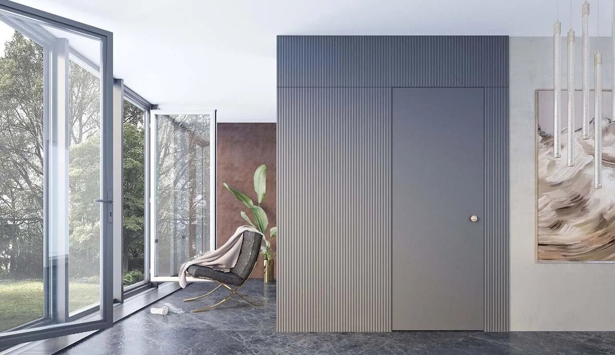Стеновые панели используют для оформления дверных проёмов и отделки стен вместо обоев и краски. Панели просто и быстро монтировать, перед установкой не нужно выравнивать стены и очищать их от старого покрытия. Основу панелей изготавливают из МДФ, ДСП или дерева, а сверху покрывают шпоном, экошпоном, эмалью. Выбранную отделку можно выкрасить в нужный оттенок. Панели одинаково хорошо вписываются в классические и современные пространства. Читайте, какие интерьерные задачи помогают решать панели для стен, и смотрите примеры с фото. Замаскировать проём Установите дверь-невидимку и панели в одинаковой отделке, и полотно визуально сольётся со стенами. Решение подойдёт для минималистичного пространства. Чтобы добавить в интерьер атмосферу тепла и сделать комнату уютнее, выбирайте отделку стеновыми панелями под дерево. Добавить акцент в интерьер Стеновые панели вместо дверных наличников станут акцентной деталью интерьера и визуально увеличат проём. Закрыть панелями можно любую площадь вокруг дв