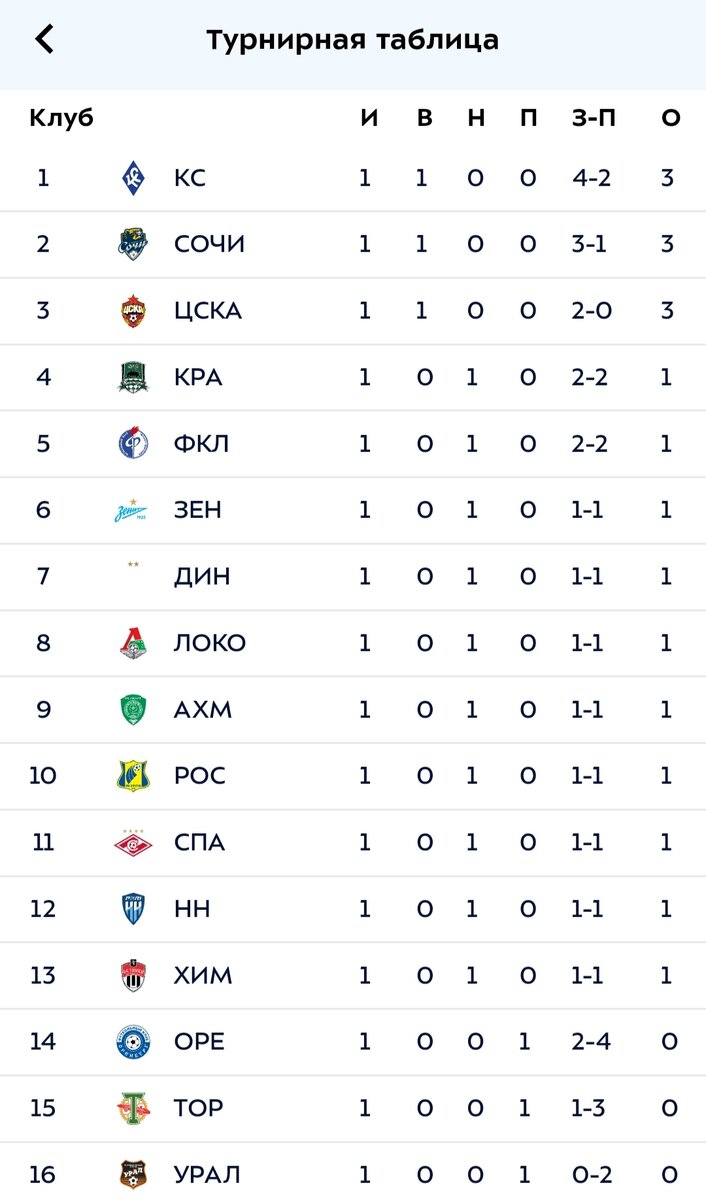 Турнирная таблица после первого тура, новый тур обязательно внесёт свои коррективы, а сейчас давайте разберём кто с кем будет играть.