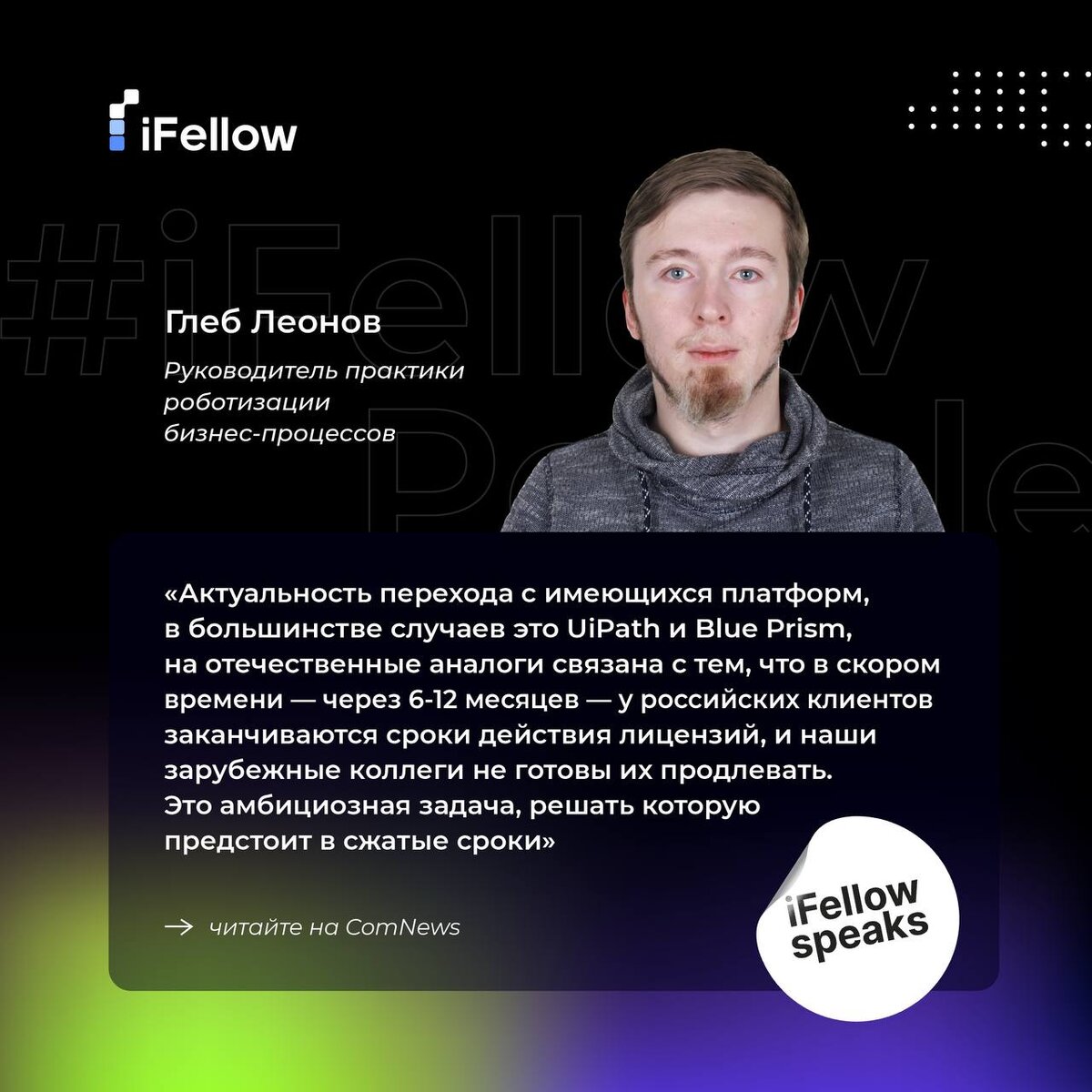 Глеб Леонов, руководитель практики RPA компании iFellow знает об этом все… нет, абсолютно все! 😎