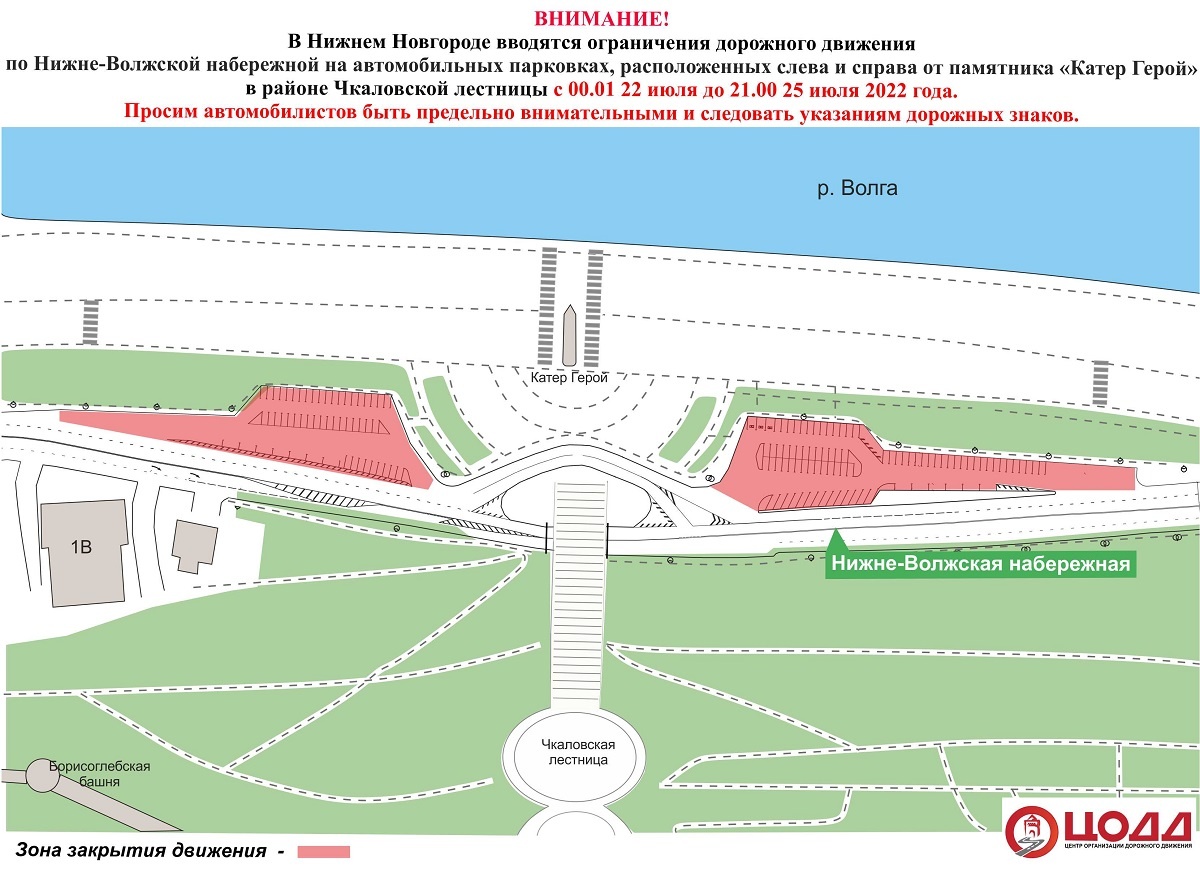 Будет запрещена парковка транспортных средств слева и справа от памятника «Катер Герой» в районе Чкаловской лестницы.